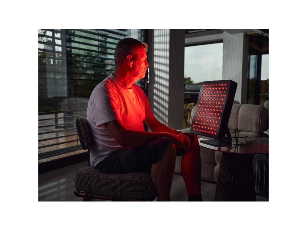 NIR proniká do hlubších vrstev tkání a společně s červeným světlem působí na pohybový aparát, orgány i pokožku — pro lepší regeneraci, kvalitu vlasů a pleti.